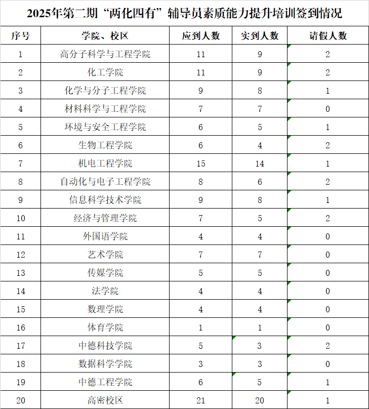 2025年第二期“两化四有”辅导员素质能力提升培训签到情况通报