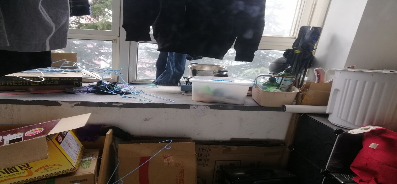 5、南五舍B607宿舍阳台脏乱。