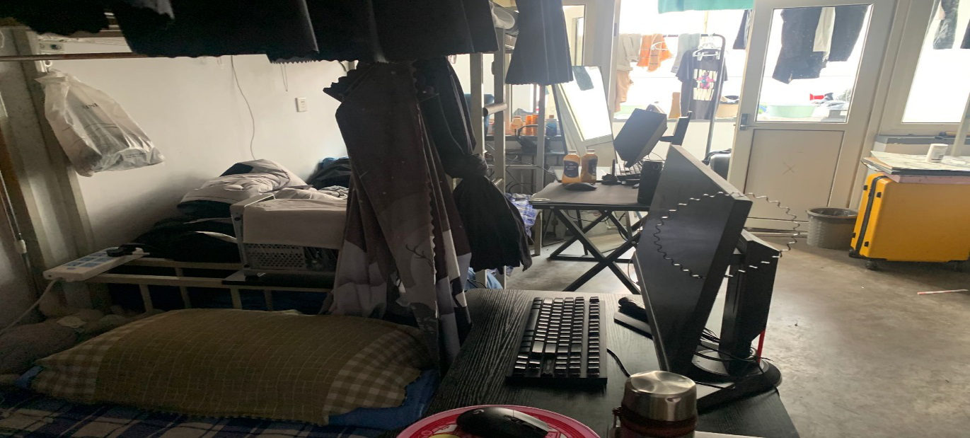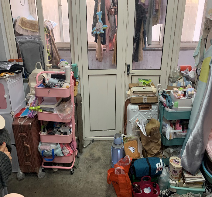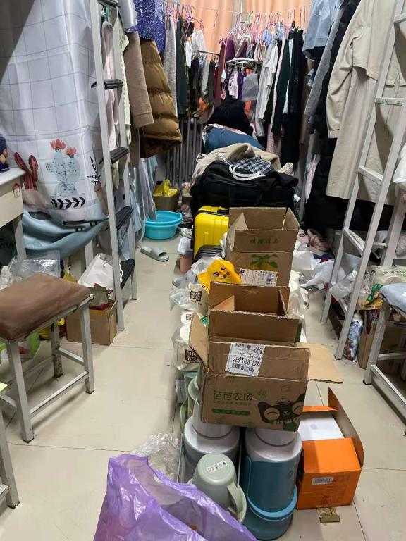 2、南二舍B215宿舍屋内杂乱,物品过多。