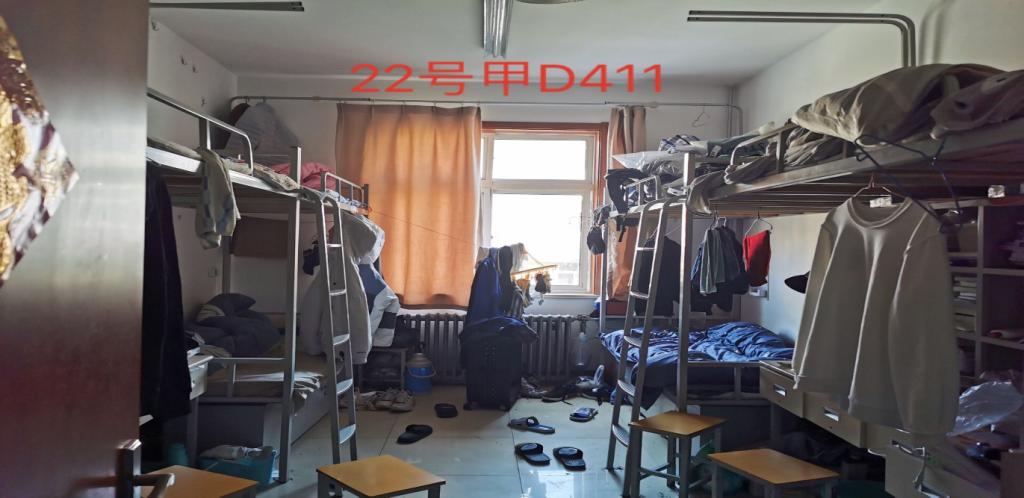 3、22号楼甲楼D区411宿舍全部未叠被、卫生脏乱。