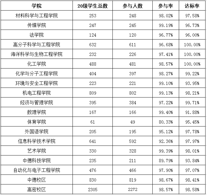 2020级新生《太阳成集团tyc9728章程》和《学生手册》测试情况