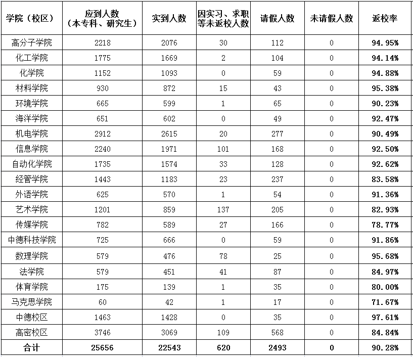 太阳成集团tyc97282022年秋季学期学生返校情况统计(截至8月28日)