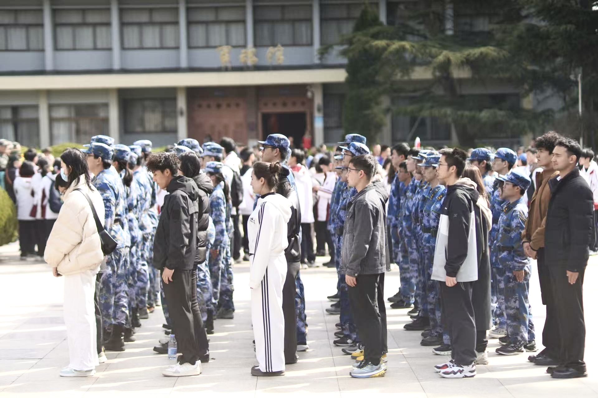 在庄严肃穆的烈士纪念碑前,师生们整齐列队,向为国家独立、人民解放事业英勇献身的先烈们致以最崇高的敬意。活动在全体人员齐声高唱中华人民共和国国歌中正式开始,全体人员神情凝重,向烈士默哀,并鞠躬致敬,寄托无尽的追思。