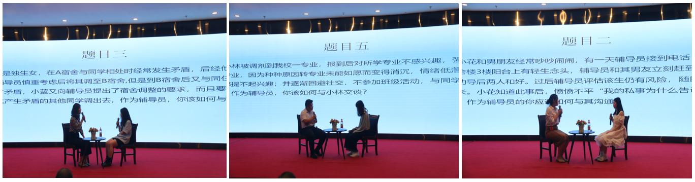 窦雅琴结合自身参加国赛、省赛的经历,对选手们的表现给予了高度评价,并结合赛题对谈心谈话工作的要点、技巧提出了中肯建议。她指出,本次决赛题目设置紧跟热点、命题新颖、导向准确,并从基本仪态、知识应用、沟通技巧、业务素养、谈话效果进行了专业点评,对提高学校辅导员职业能力提出了建设性意见建议。
