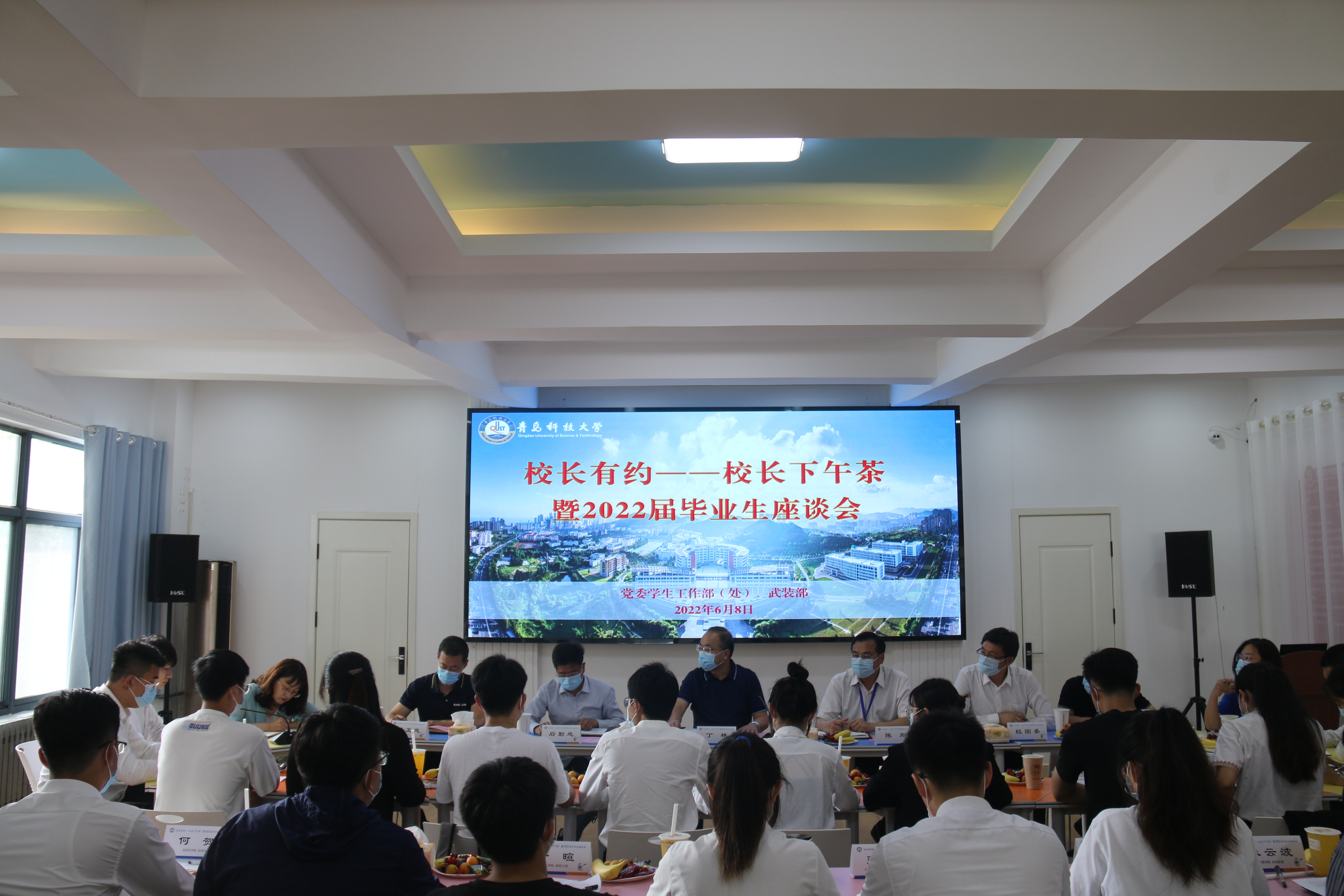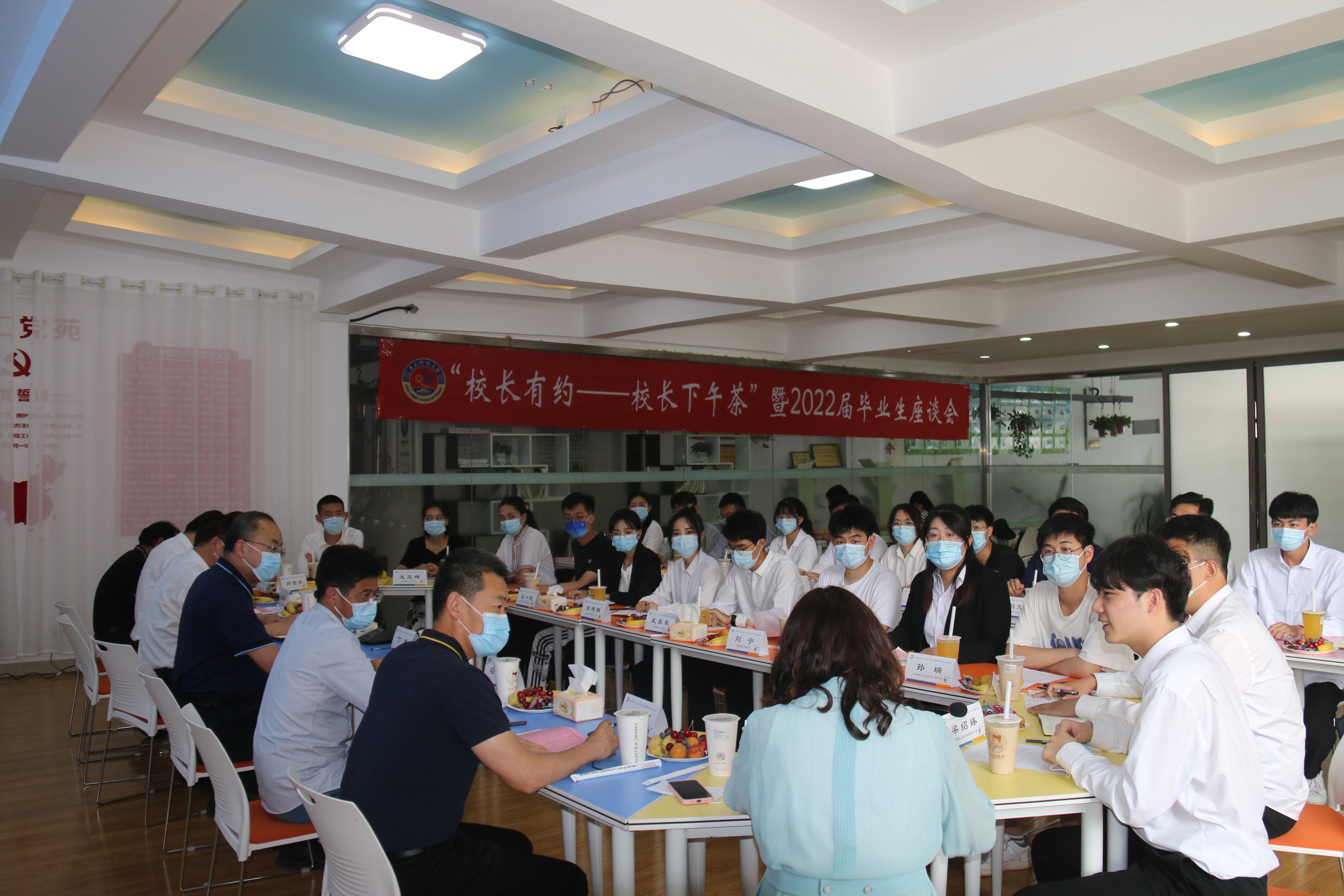 6月8日下午,太阳成集团tyc9728“校长有约——校长下午茶”暨2022届毕业生座谈会在崂山校区心理中心举行。党委常委、副校长丁林,党委常委、宣传部部长陈刚出席会议并讲话,座谈会由学生工作处副处长王丽主持。