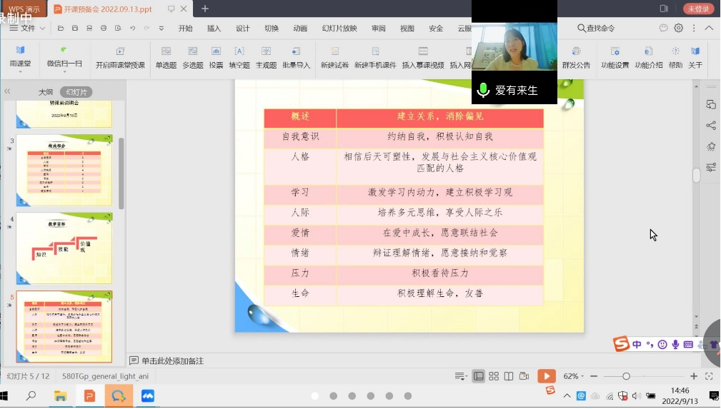 心理中心主任李海玲首先就暑期研讨进展和成果作了汇报,主要包括课件和教案的修订、教学专题重难点的梳理、教学方式的改进等内容,并且对参与专题备课的老师们倾情付出表达了感谢。其次从课程简介、专题内容、教学目标出发,对课程调整、考核方案调整及注意事项作了详细说明。本次会议重点强调从“知识、技能、价值观”三个层面明确教学目标,全面推进课程在知识掌握、技能提升、情感和价值观塑造方面发挥作用,寓价值观引导于知识传授和能力培养之中,在“润物细无声”的知识传授中融入理想信念层面的精神指引,融入“大思政”教育模式。李海玲倡导要通过案例、体验互动、翻转课堂的形式打造体验式教学模式,在以学生为主体的课堂教学中,使学生主动获取、思考、表达,并在此过程中获得成长。同时,授课老师也要不断修心养性,持续学习,获得精神滋养和心灵成长,这样才能以充盈和饱满的人格状态“感染”学生。