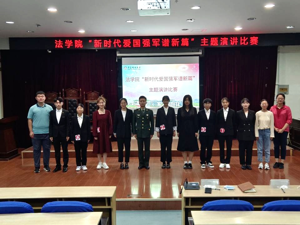拳拳爱国意,浓浓赤子心。为激发大学生关心国防、热爱国防、建设国防、保卫国防的热情,引导青年学生厚植家国情怀,9月30日晚,法学院于弘毅楼A201举办“新时代爱国强军谱新篇”爱我国防主题演讲比赛。