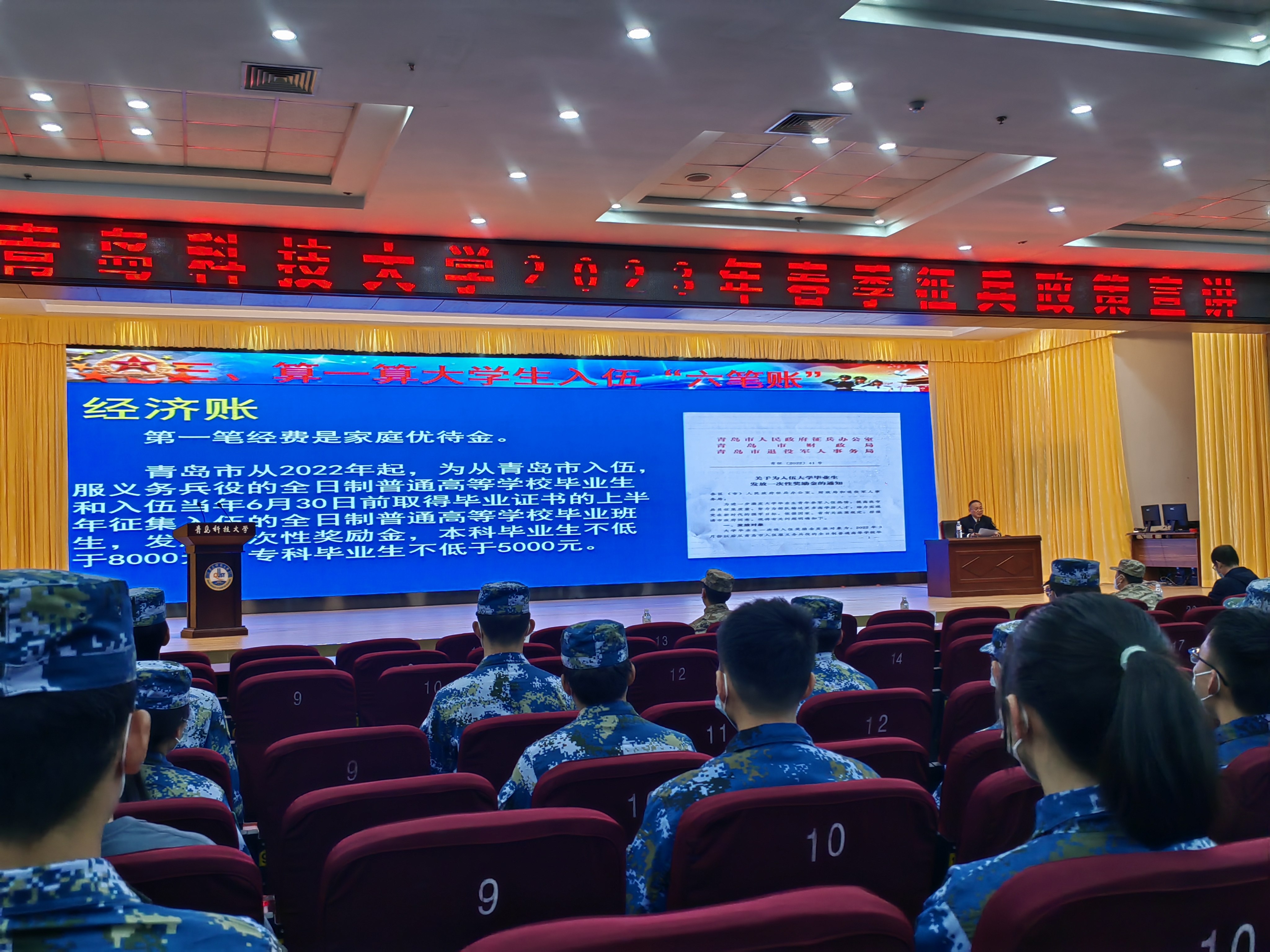 本次征兵宣讲会既是面向全体在校学生的一次国防教育课,又普及了大学生参军入伍的基本要求、优待政策,让同学们更好的了解部队,向往部队。张庆龙部长从四个方面进行了宣讲:一、依法服兵役是每个公民应尽的义务;二、改革中的中国国防和军队;三、算一算大学生入伍“六笔帐”,政治帐、发展账、经历账、感情账、健康账、经济账。四、征兵体检的标准。详细介绍了征兵政策、参军流程、入伍提干、军营生活、退役优待政策等,讲述了投身火热军营,献身国防事业的重要性。