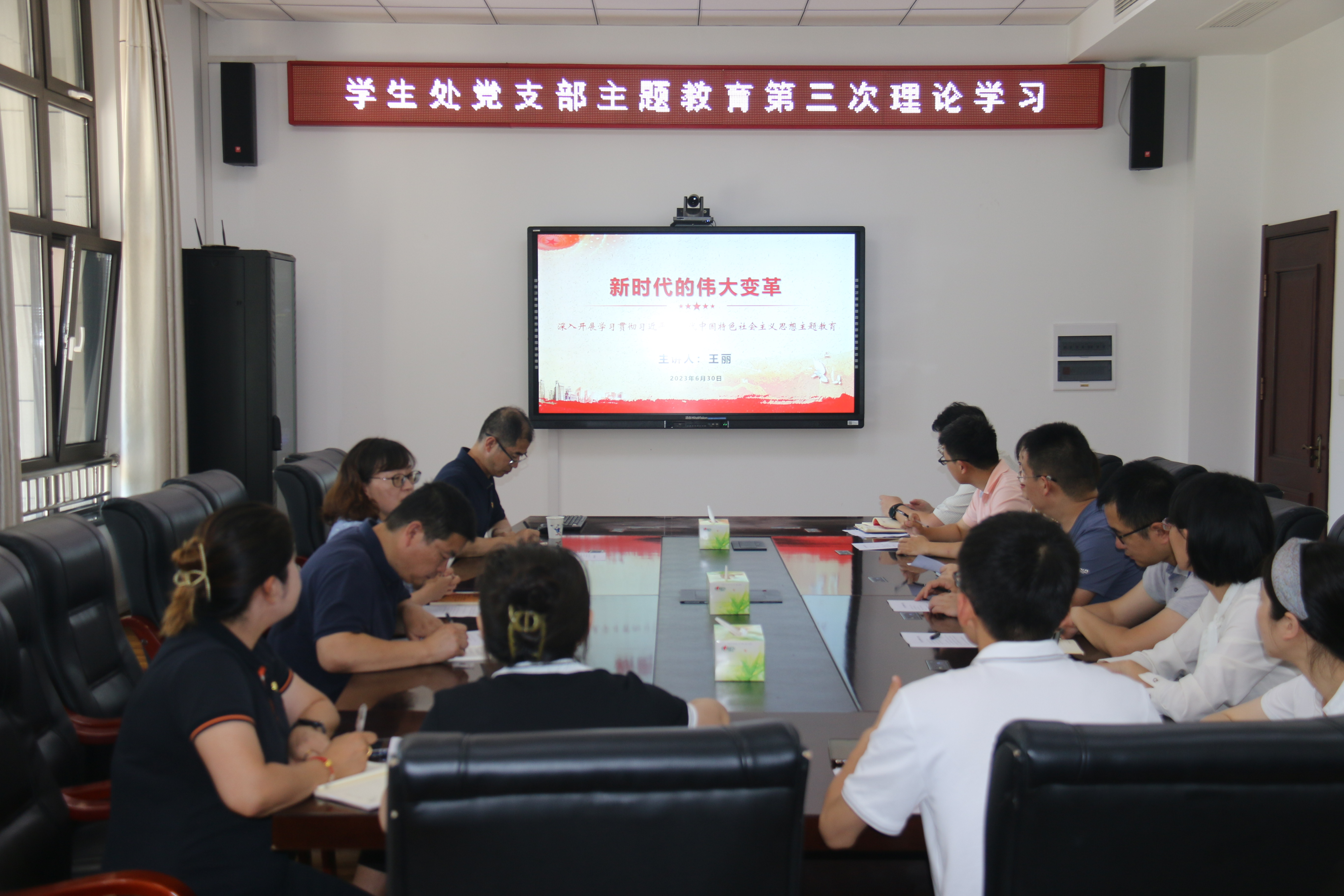 6月30日下午,在综合楼2015会议室,学生处党支部书记王丽作题为《新时代的伟大变革——深入开展学习贯彻习近平新时代中国特色社会主义思想主题教育》专题党课,学生处党支部全体党员参加学习。