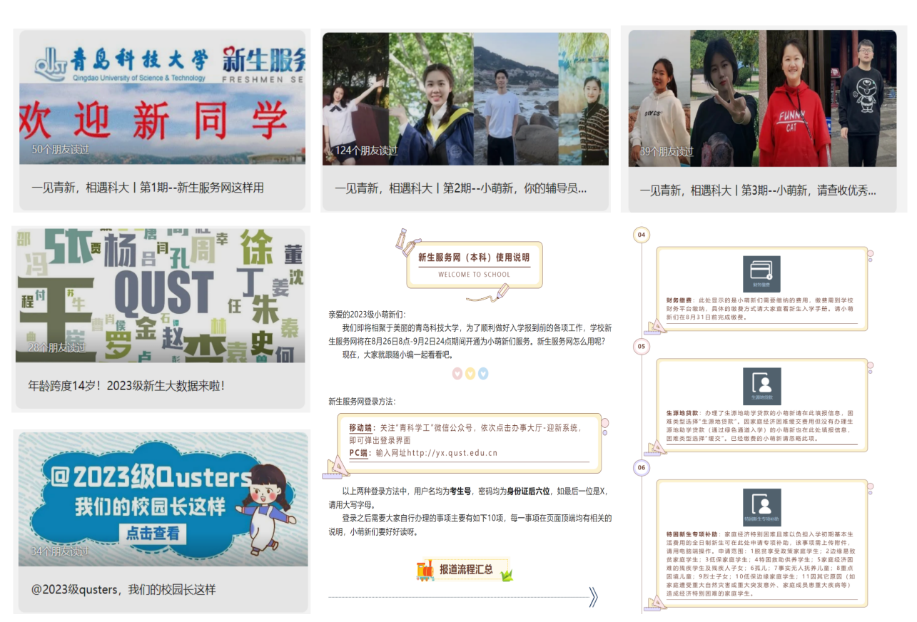 为进一步推动学生工作信息化建设,让2023级新生线上手续便捷办理,用“信”服务智慧迎新,为新生报到“搭桥铺路”。学校暑期开通新生服务网并进行全流程调试,确保迎新系统正常运营,开展新生辅导员迎新系统培训,提升辅导员网络服务意识和系统操作能力。目前,2023级新生已在新生服务网完成宿舍选定、助学贷款信息提交、特困新生专项补助申请。公众号发表“一见青新,相遇科大”系列推文,营造线上迎新氛围,让新生一文读懂、一次办好。