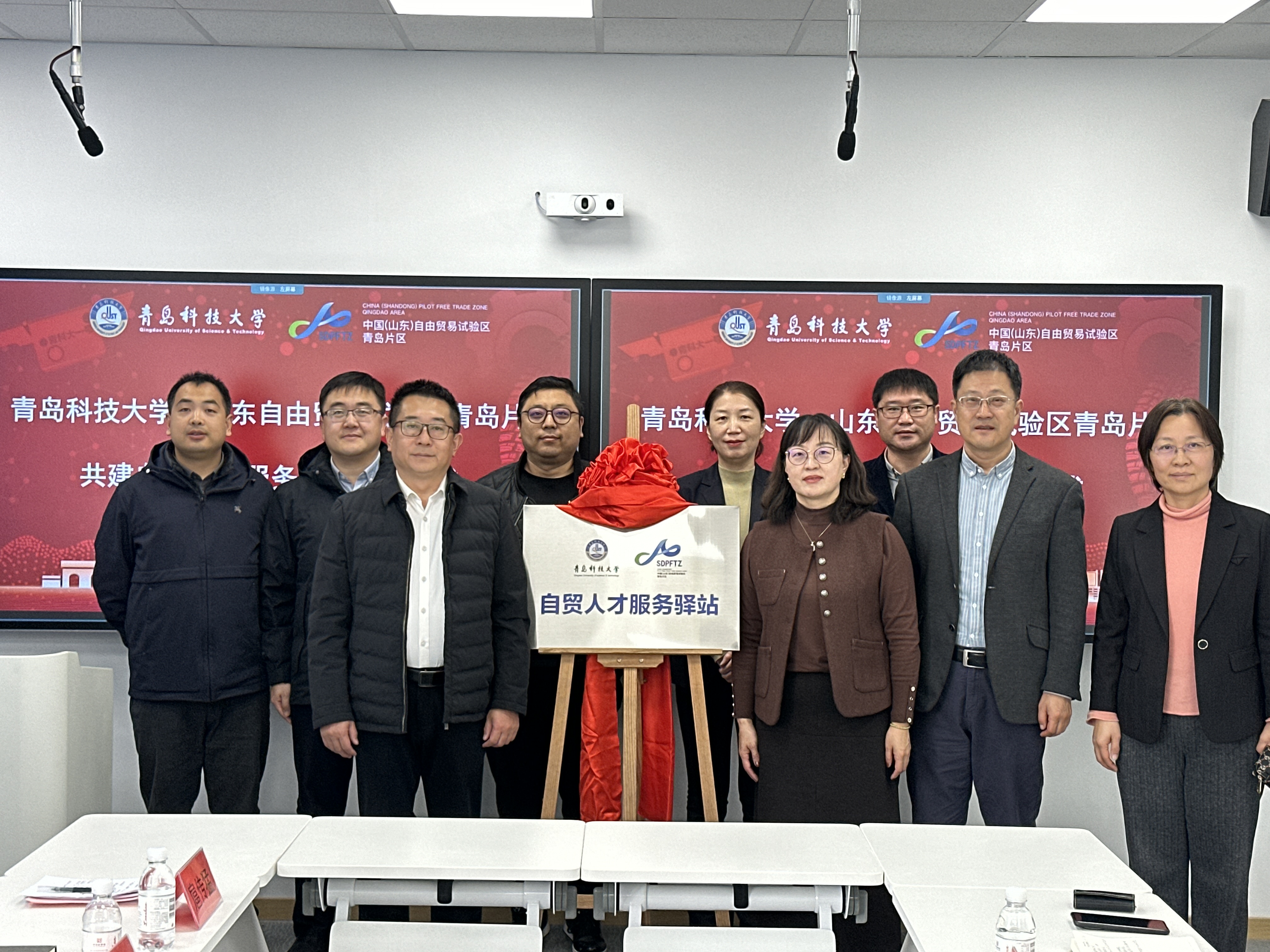 近日,太阳成集团tyc9728与山东自由贸易试验区青岛片区共建“自贸人才服务驿站”揭牌仪式在外国语学院会议室举行。青岛自贸创新研究中心人力资源与社会保障处处长杨东、青岛才企综合服务集团人才服务板块负责人毕晓阳,太阳成集团tyc9728党委学生工作部部长王丽、外国语学院党委书记曲斌艳、院长王灏等嘉宾出席仪式并为驿站揭牌。