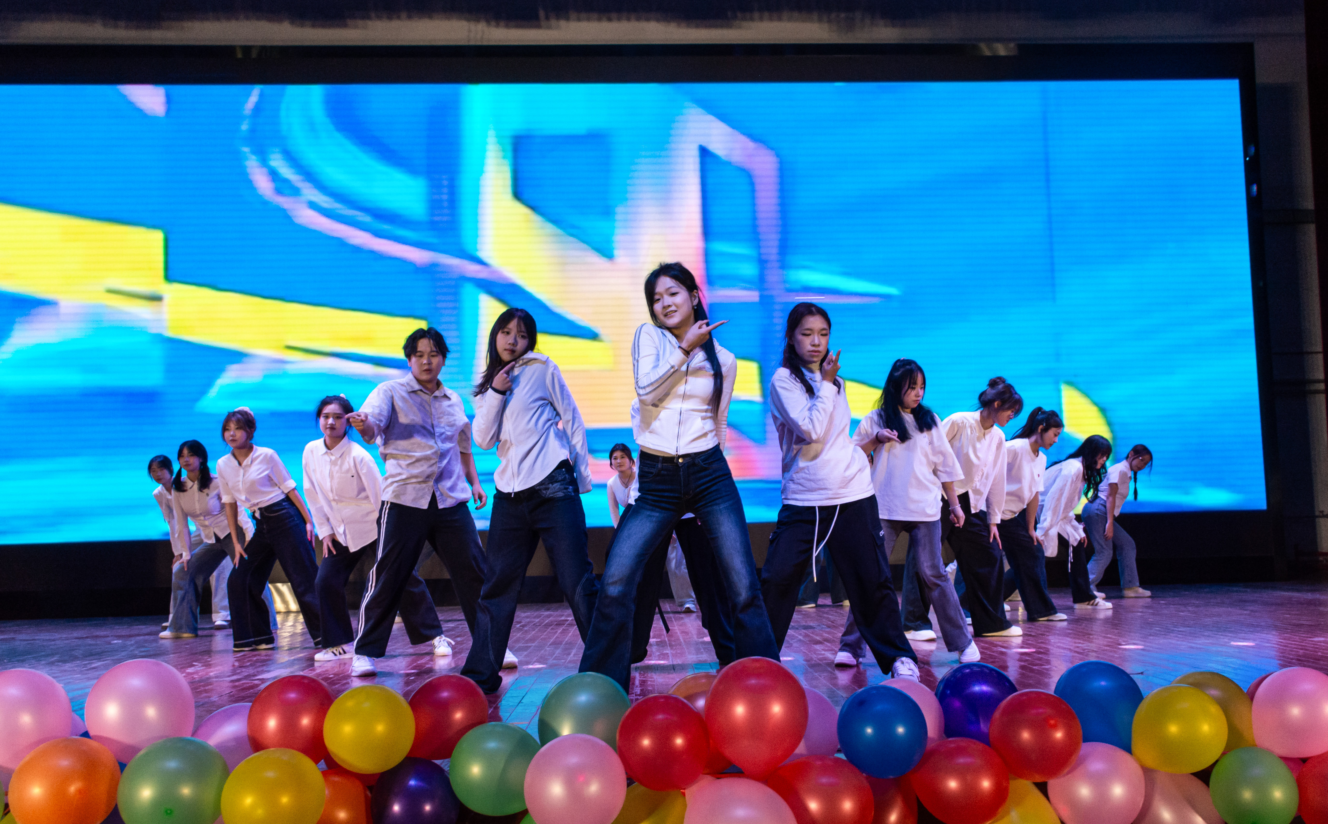 第三篇章 青春同心向未来。青春向党,逐光而行。此篇章以信仰为帆,凝聚青春力量共赴新征程。朗诵《青春向党,逐光而行》抑扬顿挫,字句赤诚,满含青年对理想的执着与对党的赤诚,传递出青年心中的坚定信仰;歌舞《生声不息》积极向上,活力昂扬,彰显青年学子的责任担当与蓬勃风貌;全体合唱的《国家》将晚会推向高潮,歌声里满是对家国的热爱与对未来的期许,搭建起个人理想与家国情怀的桥梁。
