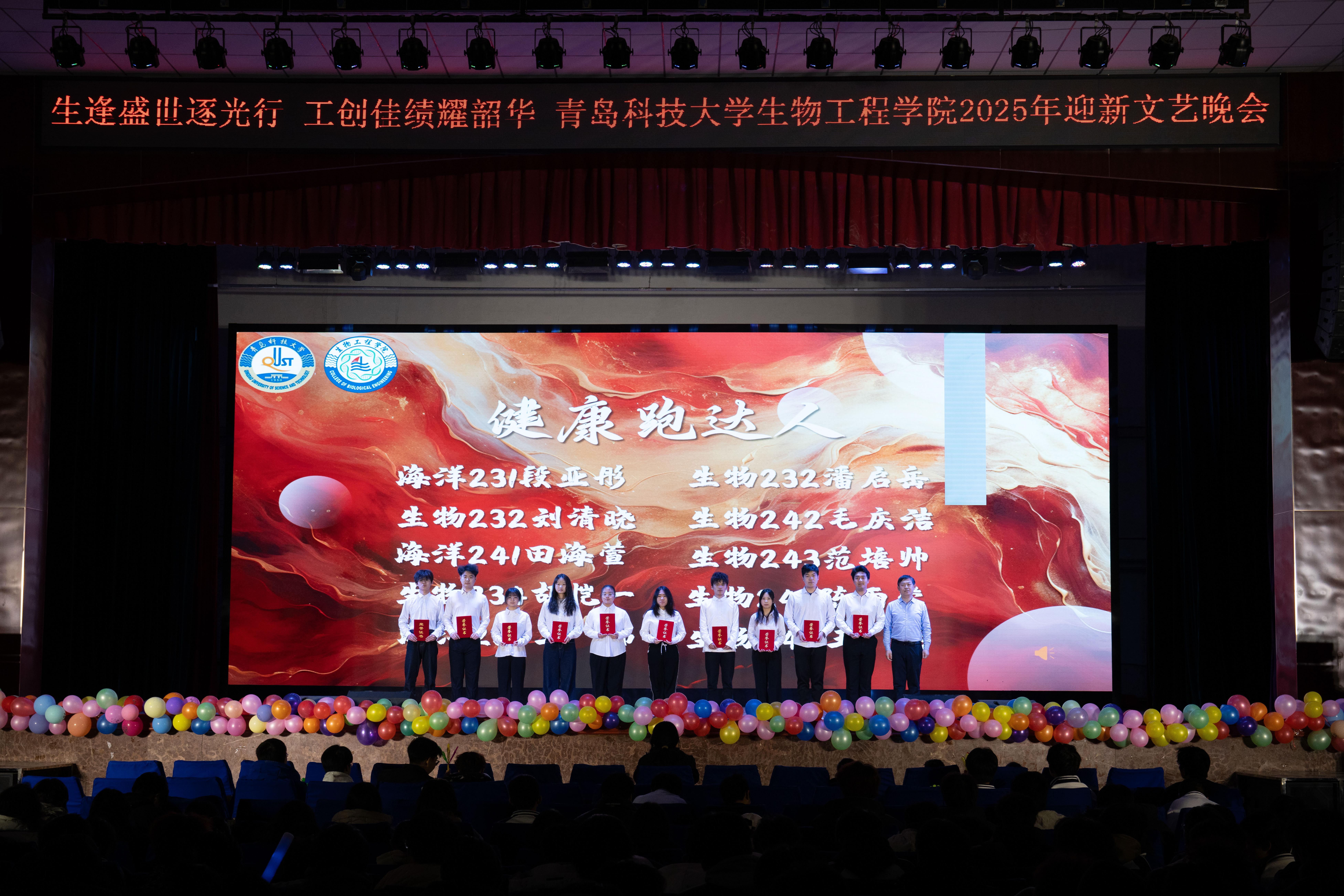 晚会中间开展学风建设表彰,对学院“健康跑达人”“文明宿舍”“十大优秀学生”等荣誉称号获得者进行颁奖。生工学子以拼搏之姿诠释运动精神;以细节彰显文明风尚;以实干书写青春华章,尽显新时代学子风采。