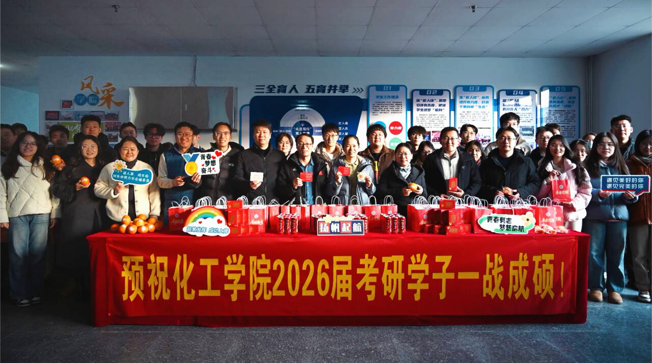 寒冬岁末,研考在即。为助力2026届考研学子舒缓备考压力,激发备考热情,坚定考研信心,化工学院于12月15日在第一教学楼举办“温情护航,一战成硕”考研送温暖活动。化工学院党委书记孙明媚,党委副书记兼副院长贾建闯,副院长高传慧、赵瑞阳、崔培哲、李雁涛,学工办全体老师及2026届考研学子参加活动。
