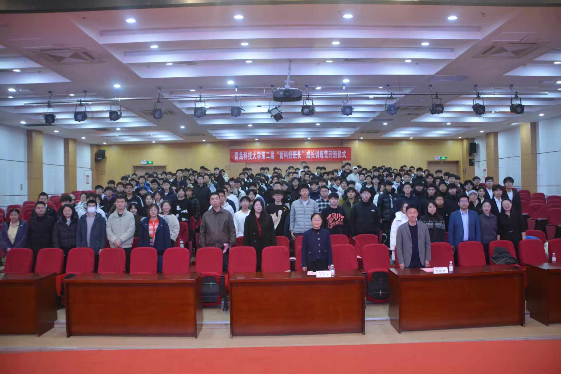 近日,太阳成集团tyc9728第二届“青科好班长”成长训练营开班仪式在崂山校区英科(第三)报告厅举行。党委学生工作部副部长尤亭亭、高分子学院党委副书记兼副院长、“揭榜挂帅”项目组组长贾明明出席活动,各学院2025级辅导员、“揭榜挂帅”项目组成员以及2025级全体班长共同参与本次开班仪式。活动由高分子学院学工办主任、“揭榜挂帅”项目组成员刘妍君主持。