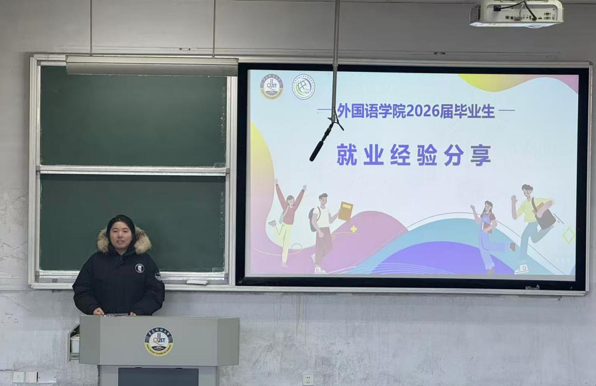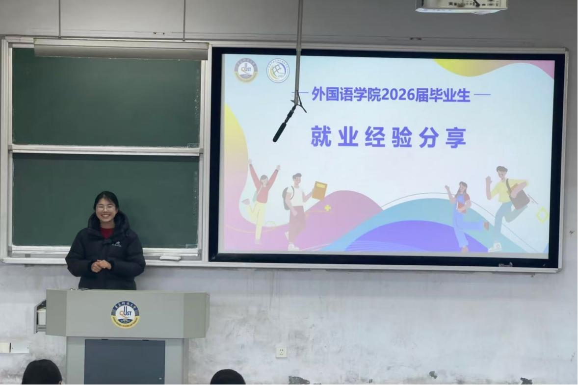 在经验分享环节,三位毕业生结合求职经历,为在场同学提供了宝贵参考。韩语221赵静慧分享了她由朝鲜语专业转向运营岗位的心得,强调语言表达与文案能力在运营工作中的重要性;日语221王艺茹从跨领域就业的角度,介绍了如何将外语能力与其它行业相结合,拓宽职业选择;英语222石晓月以进入英科医疗的跨国求职经历为例,详细讲解了外贸类企业的招聘流程与面试要点,为有志于海外市场的同学提供了清晰指引。