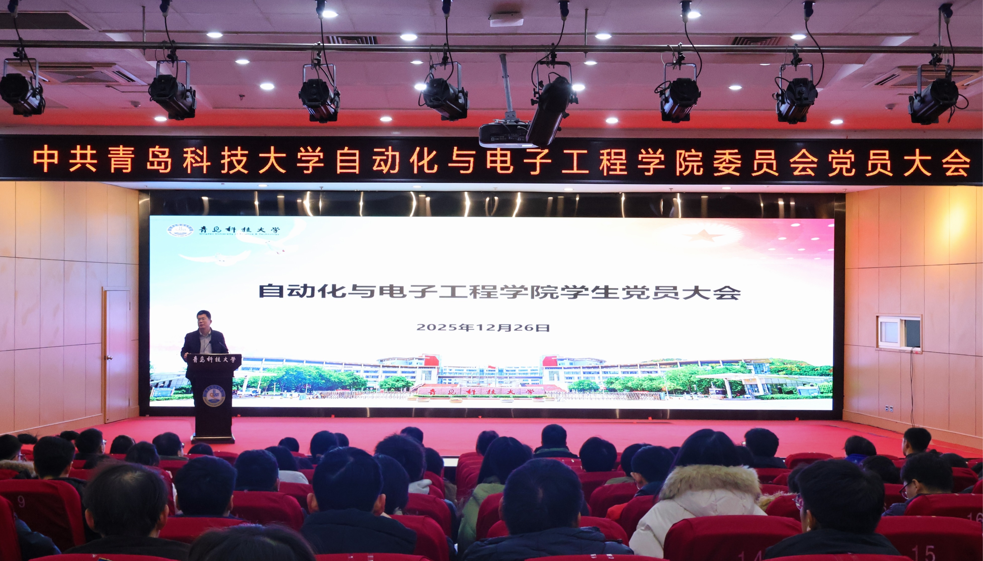 为强化学生党员责任意识与先锋模范作用,凝聚青年力量助力学院发展,12月26日,自动化学院在崂山校区第三报告厅召开学生党员大会。学院党委副书记刘名森出席并讲话,全体辅导员及学生党员参会。