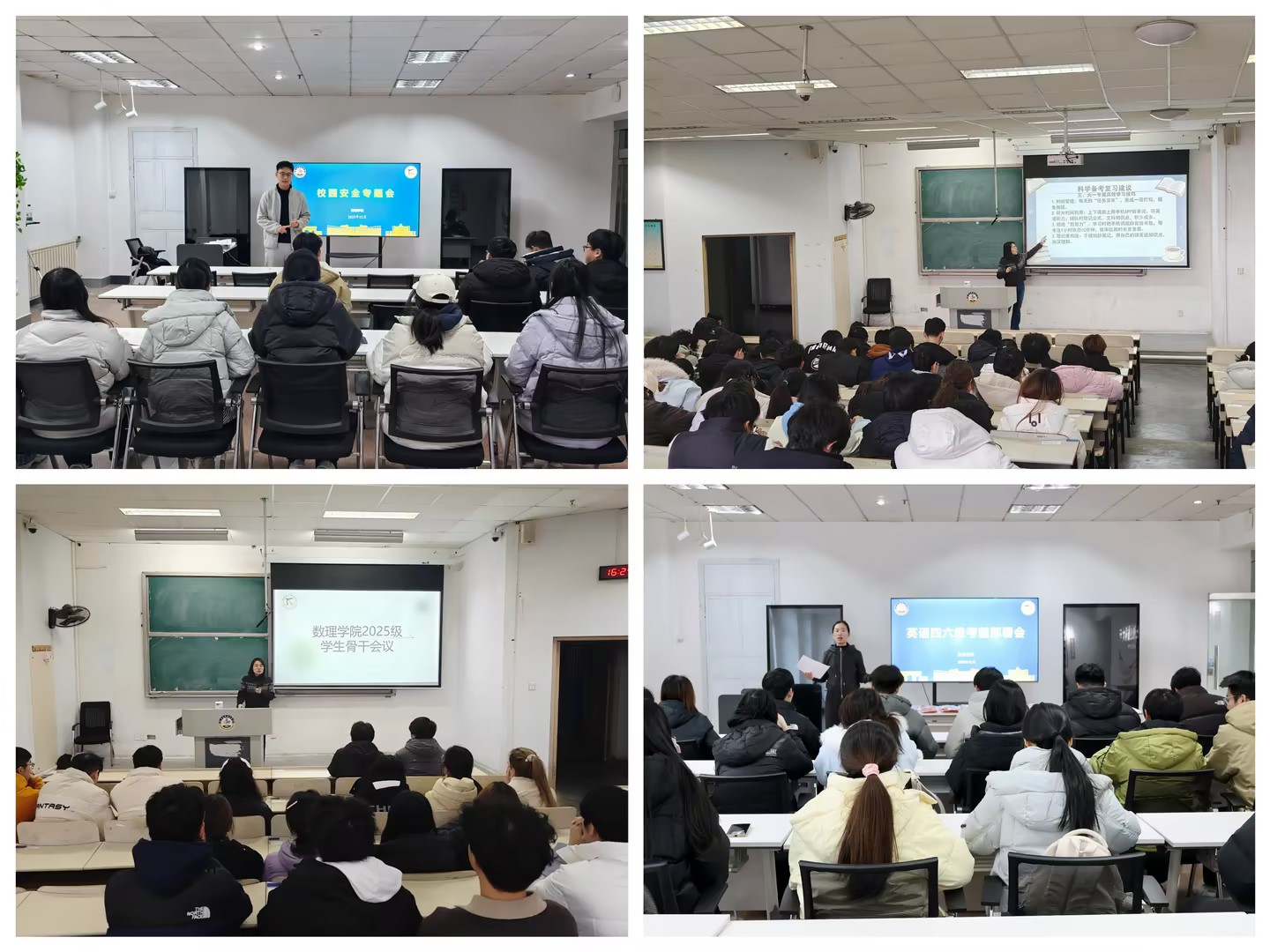 为持续强化学风建设与安全教育工作,近日,数理学院组织召开考风考纪与安全专题骨干会议及年级大会,将制度刚性约束与人文关怀引导相结合,实现“骨干引领、全员覆盖”的教育效果。