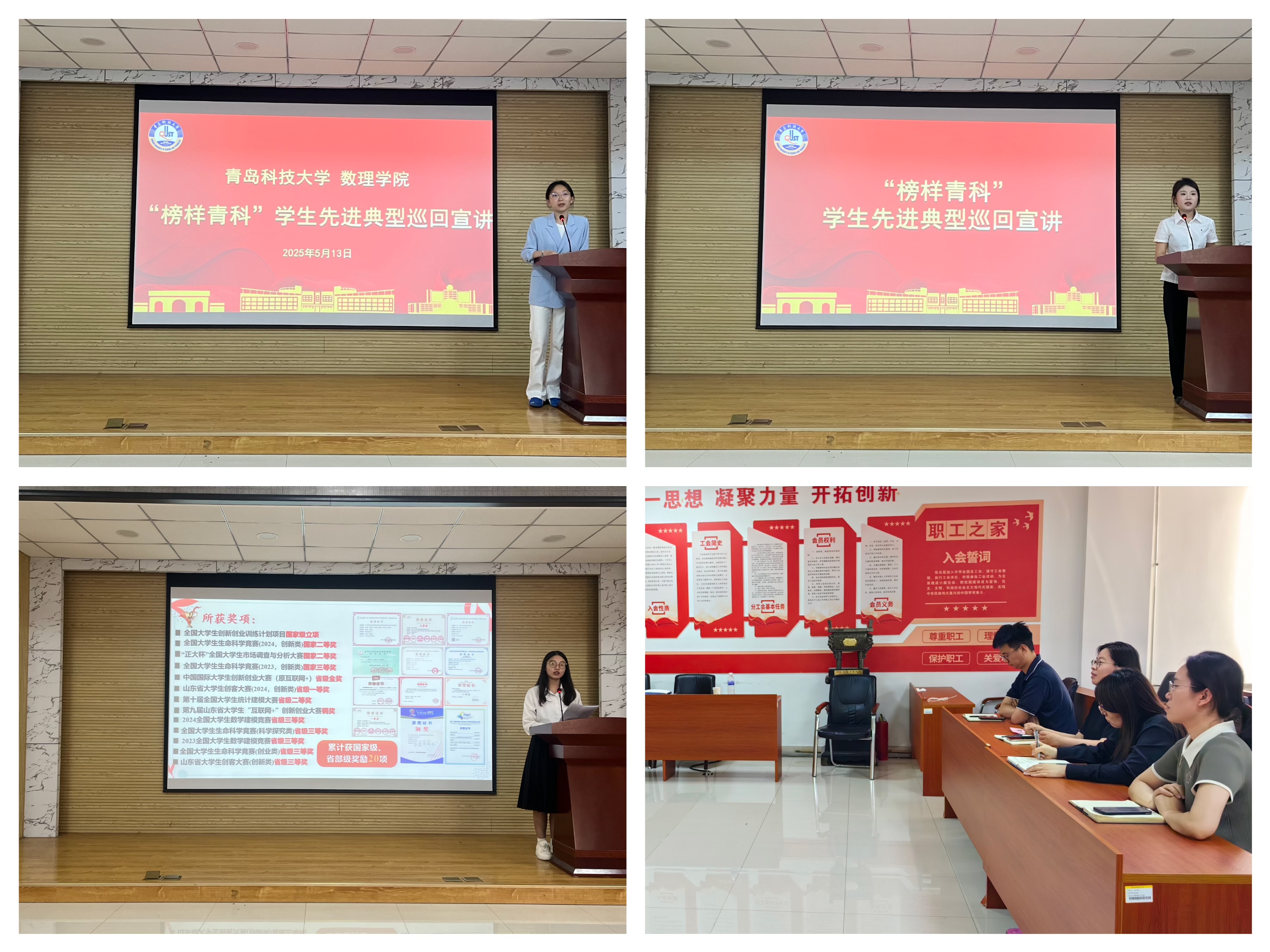 近日,“榜样青科”学生先进典型巡回宣讲团试讲活动成功举办,来自部分学院的“青科好班长”“十大优秀学生”宣讲成员同台展示,涵盖学科竞赛、思想引领、班级建设等多元主题,标志着暑期巡回宣讲进入最后筹备阶段。项目组成员全员参加并现场交流、指导