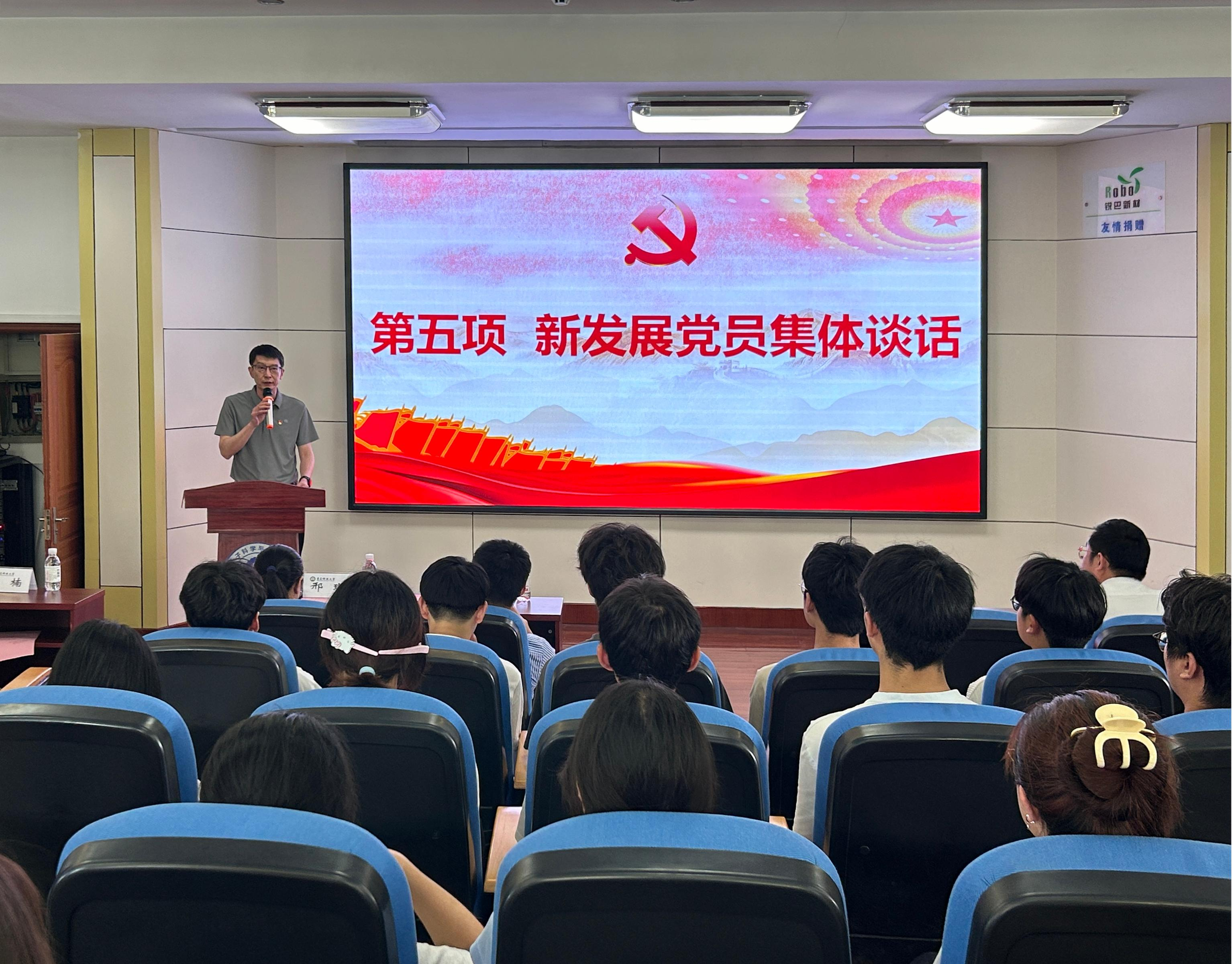 为进一步加强党员队伍建设,强化新发展党员的党性修养和使命担当,7月1日下午,高分子学院在学院401阿郎新科报告厅组织开展2025年上半年新发展党员集体谈话暨入党宣誓仪式,学院党委书记宣宗伟、学院党委副书记兼副院长贾明明出席仪式。