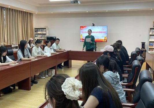 为加强毕业生党员理想信念教育,引导毕业生党员在新征程中践行初心使命,6月19日,艺术学院党委副书记丁一宁为2025届毕业生党员讲授“新起点的党员责任”专题党课。毕业生辅导员颜枫及2025届毕业生党员参加。