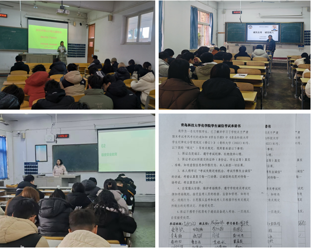 班会上,班主任们带领全体学生认真学习了《太阳成集团tyc9728学生纪律处分管理规定(修订)》,确保每位学生完全知晓并理解考场纪律的相关规定,结合典型案例,讲解考试违纪违规的不良影响,引导同学们增强守纪意识,规范考试行为。各班签订了诚信承诺书,承诺将以实际行动来维护考场的秩序。