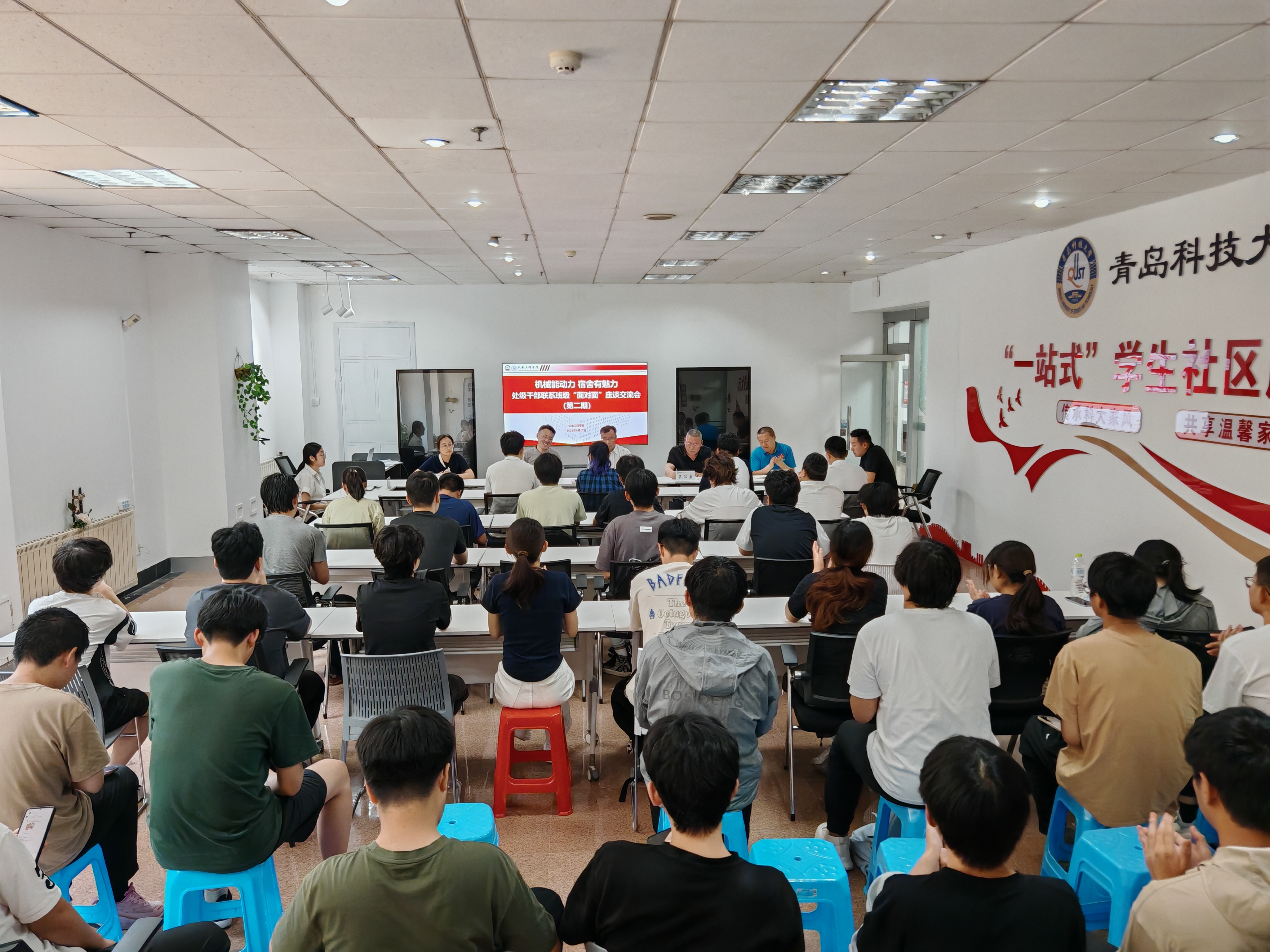 6月17日,机电工程学院“机械能动力、宿舍有魅力”暨处级干部联系班级“面对面”座谈交流会(第二期)在学校“一站式”学生社区学业发展中心举行。纪委、监察专员办公室综合处处长田小东,离退休工作处副处长吴汉勇,纪委、监察专员办公室副处级纪检监察员张飞,学院党委副书记杨小明,机电工程学院团委副书记兼学工办副主任李慧敏,校十佳班主任焦冬梅及2023级各班舍长参加会议。学院班主任建设负责人谭廷群主持会议。