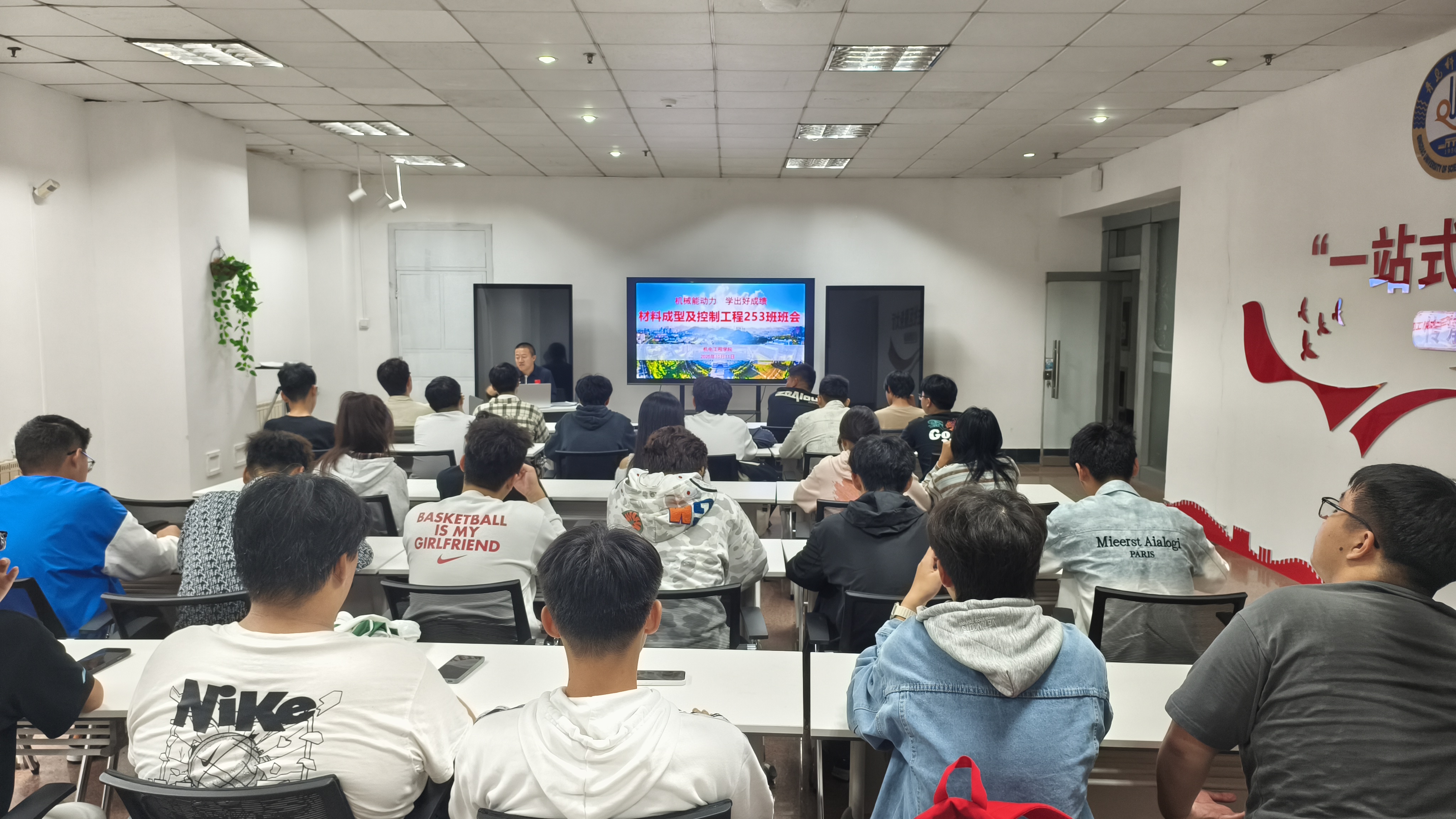 10月11日,机电工程学院在学校“一站式”学生社区学业发展中心召开材料成型及控制工程253班新生入学教育示范主题班会,辅导员、班主任代表和全班同学观摩或参加班会。学院党委副书记、班主任杨小明主持班会。