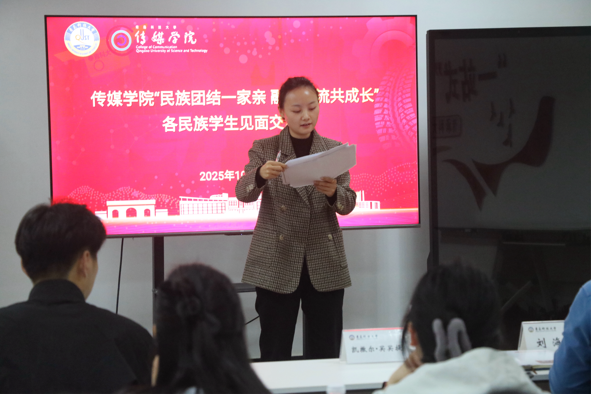 此次交流会,既是思想的碰撞、文化的交融,更是信念的凝聚。从政策解读到榜样分享,每一个环节都在为铸牢中华民族共同体意识注入青春力量。未来,传媒学院将持续搭建各民族学生交流成长的平台,引导青科传媒人在笃行实干中共筑梦想,让“石榴籽”紧紧相拥的情谊,在校园里生根发芽,在新时代的征程中绽放更耀眼的光彩。