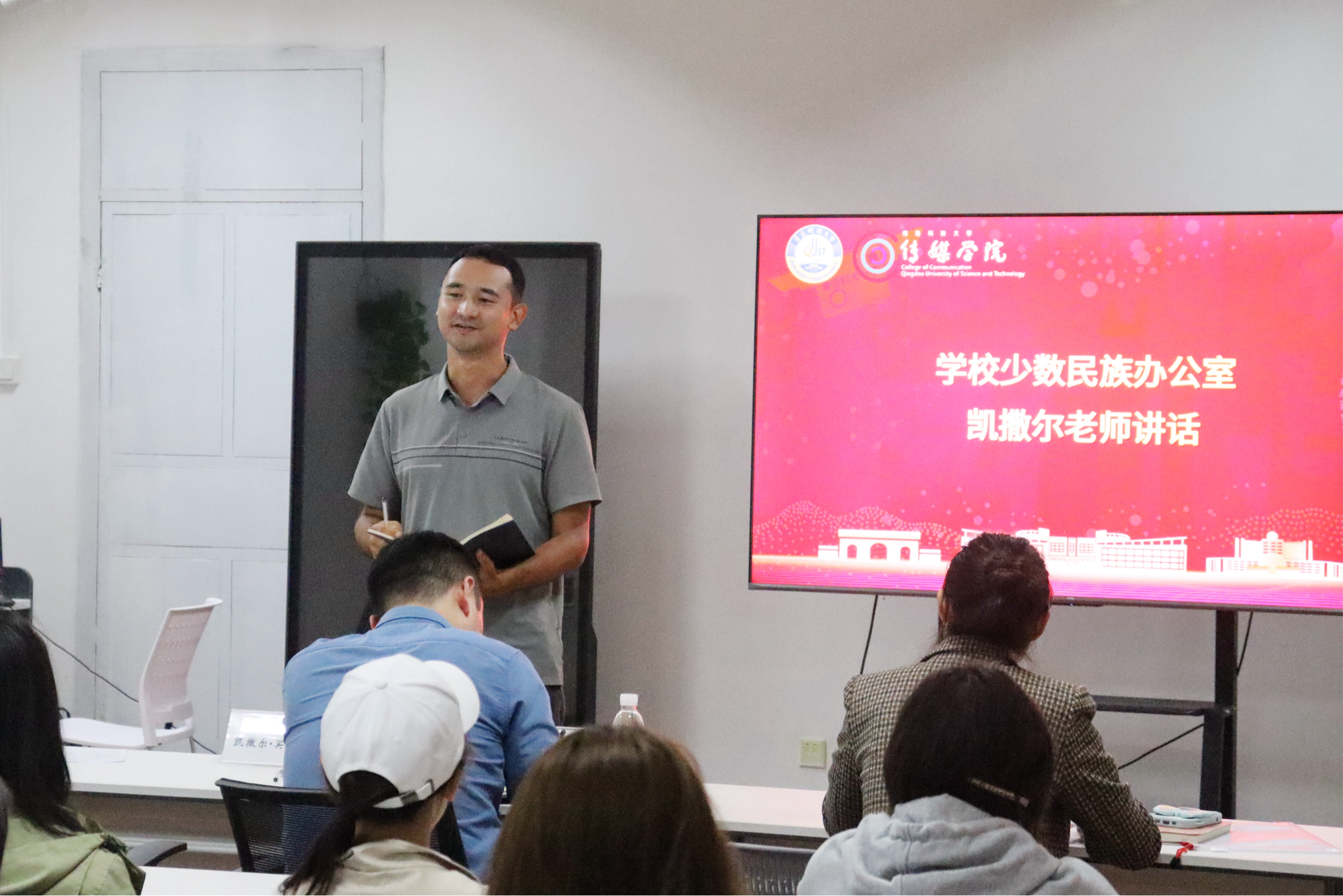 为持续深化民族团结进步教育,铸牢中华民族共同体意识,10月14日下午,传媒学院在“一站式”学生社区召开第三届“民族团结一家亲 融情交流共成长”各民族学生交流会。学院党委副书记兼副院长刘海波、学校少数民族工作办公室凯撒尔·买买提老师、学院辅导员张凤及各年级少数民族学生出席会议。会议由张凤主持。