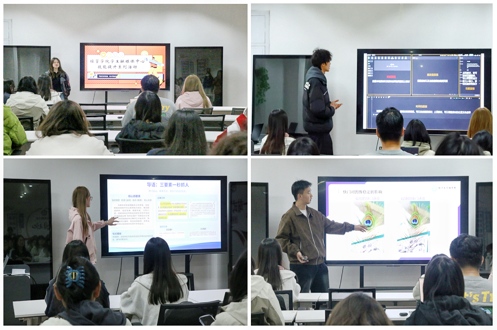 据悉,经管学院学生融媒体中心技能系列提升活动旨在通过专题培训、实操指导等形式开展“传帮带”,有效推动新成员快速掌握内容策划、视觉设计等核心技能,实现从“零基础”到“独立产出”的跨越。接下来,学院将持续开展相关技能培训活动,深化“学生成长共同体”建设,聚焦学生骨干能力培养,切实把活动成效转化为服务学生全面发展的实际助力,为学院宣传工作高质量发展注入新动能,为生动传递学院声音、展现经管精神风貌提供坚实支撑。