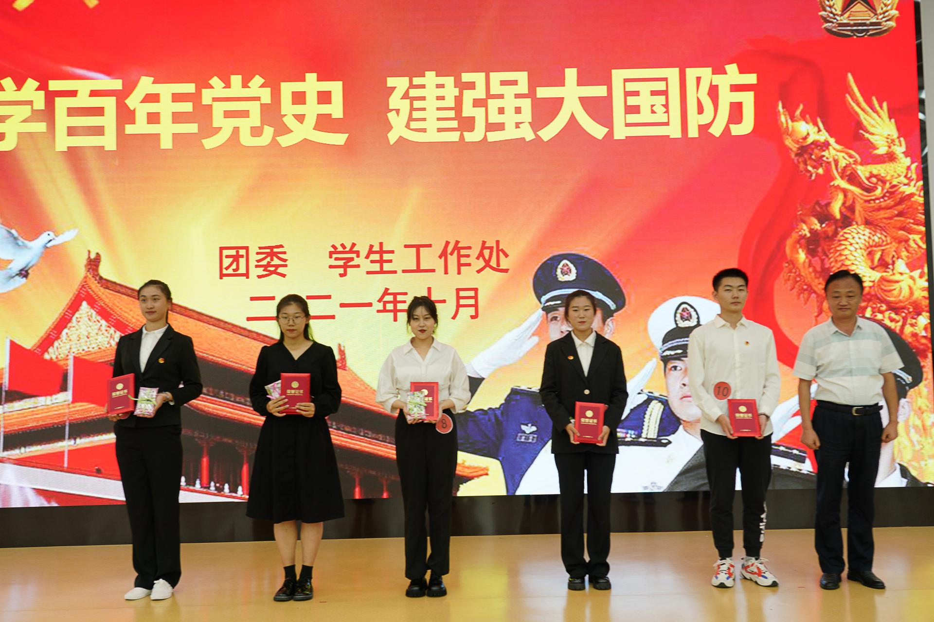 经大赛评委现场评选,高分子学院杨松的《长征我们一直在路上》、海洋学院刘欣怡《中国在这国防在心》、自动化学院阚新磊《国防重任,在于你我》获一等奖;法学院李凯玥《百年接力,强国有我》、潘昱洁《与党同行,与英雄同行》、经管学院刘传敏《爱我中华,情系国防》、鲁亦璨《学百年党史,建强大国防》、环境学院提雪艺《学党史,跟党走,强国防》获二等奖;化学院李若琳、高分子学院朱万超、艺术学院郭思伊、法学院吴佳鑫、环境学院杜晓君、侯丽华、信息学院孟雨霏同学获三等奖。现场为获奖选手颁发了荣誉证书和纪念品。