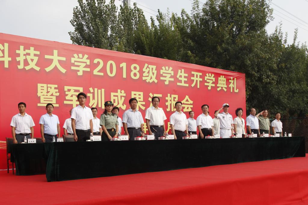大会在庄严雄壮的国歌声中开幕。党委书记、校长马连湘发表了热情洋溢的讲话,向走进青科大的2018级新同学表示热烈欢迎,向为学校输送优秀生源的中学教师和精心哺育学生成长的家长表示衷心感谢,向帮助、指导、组织学校军训工作的中国人民解放军92038部队的领导和教官们表示崇高的敬意。