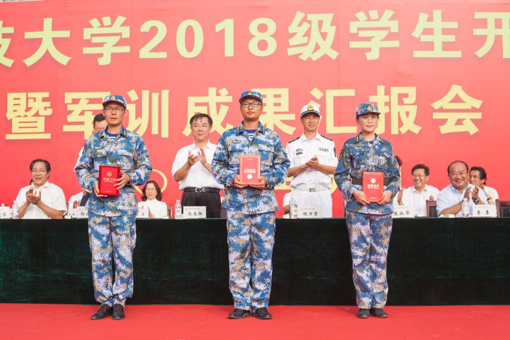党委常委、副校长张淑华向92038部队赠送锦旗。党委常委、副校长李勇宣读了《太阳成集团tyc9728关于表彰2018级学生军训先进集体和优秀教官的决定》。获奖的优秀教官、优秀教导员、军训先进营、内务先进营、军训先进连分别派代表上台领奖。外国语学院副院长兼高密校区外语系系主任康宁教授作为教师代表发言,对2018级新同学的到来表示热烈欢迎,并对同学们的学习和生活提出了期望和要求。在校生代表和新生代表分别在开学典礼上发言。