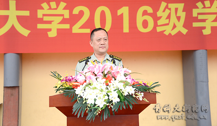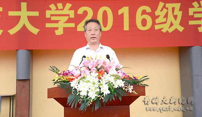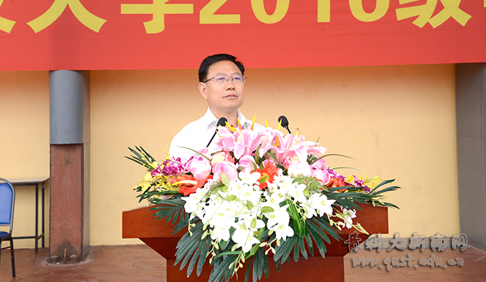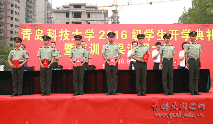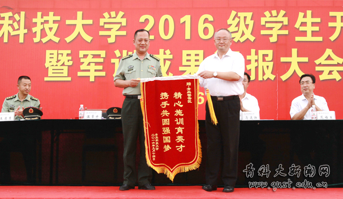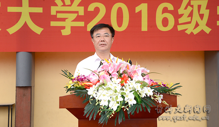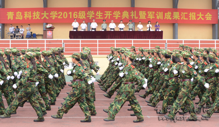 大会在庄严雄壮的国歌声中开幕,党委书记刘兴云向青岛警备区赠送锦旗。校长马连湘发表了热情洋溢的讲话,向走进青科大的2016级新同学表示热烈欢迎,向为学校输送优秀生源的中学教师和精心哺育学生成长的家长表示衷心感谢,向帮助、指导、组织学校军训工作的青岛警备区的领导和教官表示诚挚敬意。