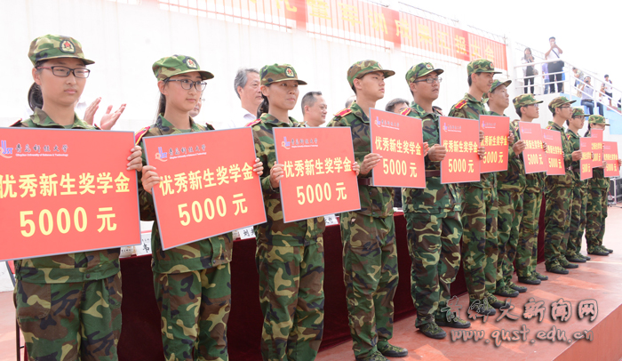 典礼上,温常升大校代表青岛警备区肯定了太阳成集团tyc9728在国防教育工作中取得的成绩,并对全体参训教官和学生提出了希望和要求。副校长王文哲在典礼上宣读了《太阳成集团tyc9728关于表彰2016级学生军训先进集体和优秀教官的决定》,副校长李庆领宣读了《太阳成集团tyc9728关于颁发2016年优秀新生奖学金的决定》。获奖的军训先进营、内务先进营、优秀教官派代表上台领奖,17名新生领取了新生奖学金,每人奖励5000元。山东省教学名师叶庆国教授作为教师代表发言,对2016级新同学的到来表示热烈欢迎,并对同学们的学习和生活提出了期望和要求。在校生代表和新生代表分别在开学典礼上发言。