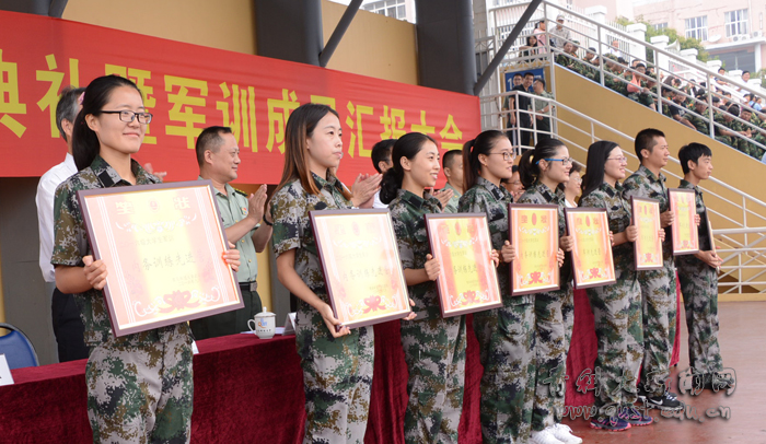 马连湘表示,各位新同学刚刚完成了大学的第一课——军训。回顾14天的军训,同学们在教官的严格指导下,发扬不怕苦、不怕累的大无畏精神,认真地落实每一项训练活动,不仅强健了体魄,磨练了意志,而且增强了国防观念,培养了众志成城的团队意识。刚才的军训汇报演示,你们精神抖擞、意气风发,向学校交出了第一份优异的答卷。