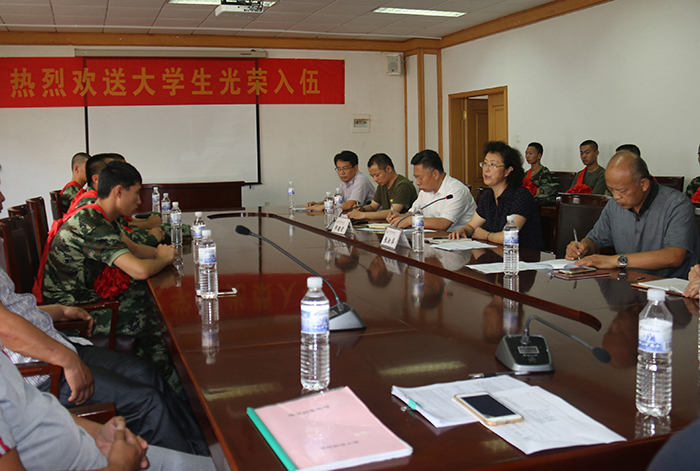 9月8日下午,学校2016年入伍大学生欢送会在经管楼313会议室举行。副校长张淑华出席会议并讲话,学校武装部工作人员、学院分管学生工作书记、入伍学生代表、学生家长代表参加了欢送会,欢送会由武装部部长郑德前主持。