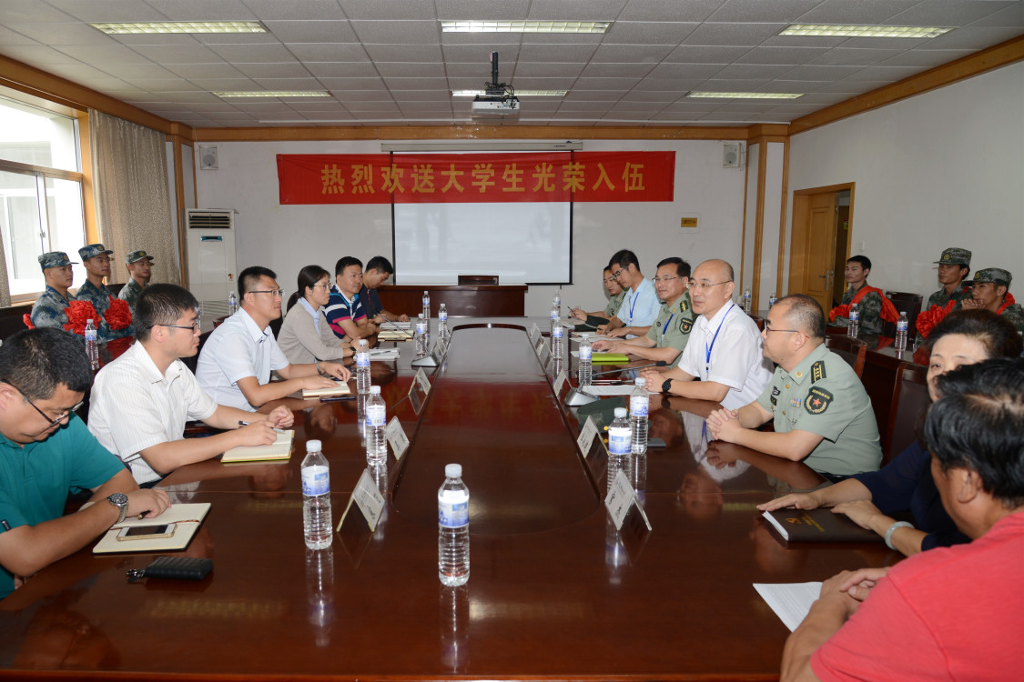 9月8日上午,太阳成集团tyc97282017年大学生应征入伍欢送会在经管楼313会议室举行。副校长陈克正出席会议并讲话,青岛市市北区武装部政委李永健、学校武装部领导、各相关学院总支副书记、入伍学生代表参加了欢送会。会议由武装部副部长曹永俊主持。