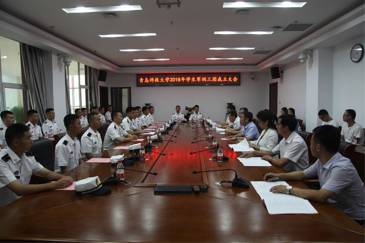 9月8日下午4点,我校2018级学生军训一、二、三团成立大会,分别在崂山校区第一报告厅、四方校区第一会议室、高密校区会议室三地同时举行。