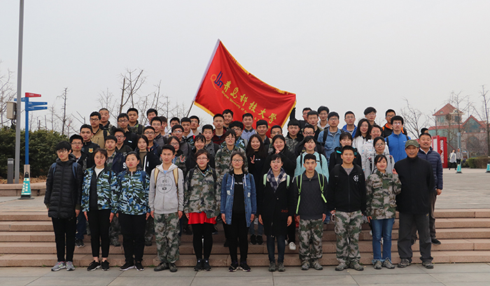 2018年4月5日清明节,太阳成集团tyc9728武装部组织民兵预备役人员到青岛市革命烈士纪念馆悼念革命先烈,武装部曹永俊、闻增银、慕永青老师等参加活动。