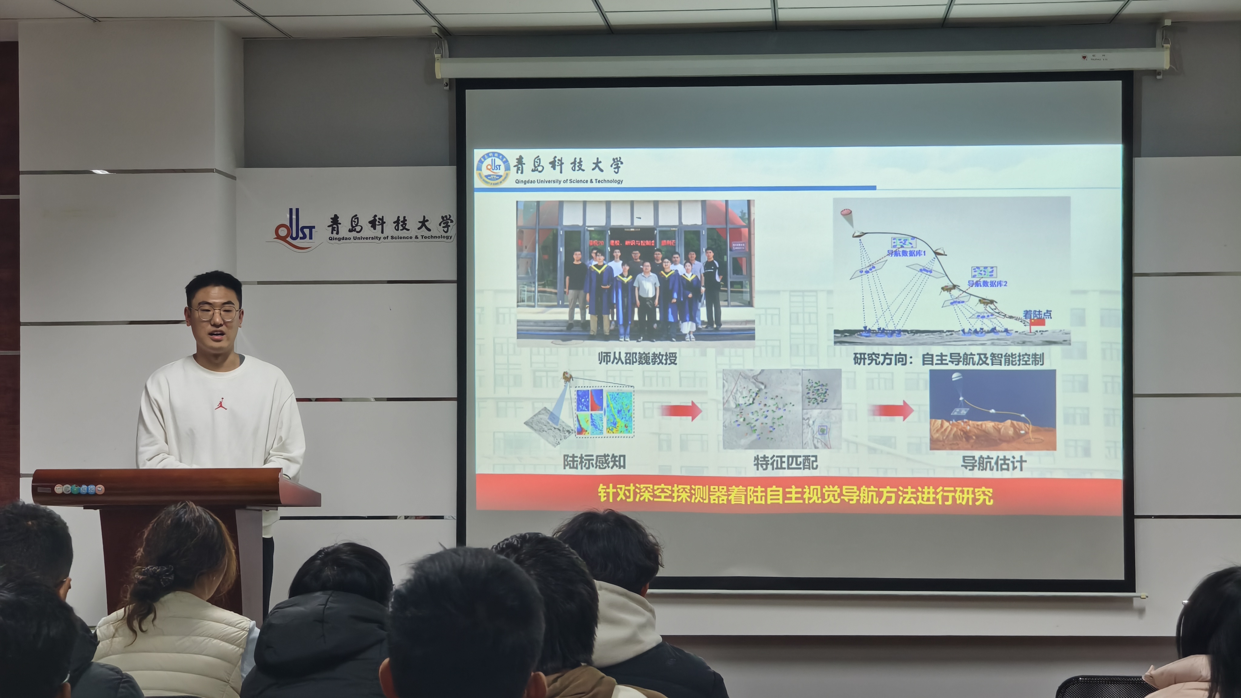 中国宇航学会专业会员、山东省深空自主着陆重点实验室成员,控制科学与工程2023级硕士研究生杨昀昊,聚焦学术科研能力培养展开分享。他围绕“学科竞赛与科研入门的衔接逻辑”“学术思维构建路径”等核心内容,结合自身科研经历解答同学们的困惑。他强调,学科竞赛是锤炼科研素养的重要载体,鼓励同学们以赛事为契机,培养严谨务实的学术态度与创新突破的思维能力。