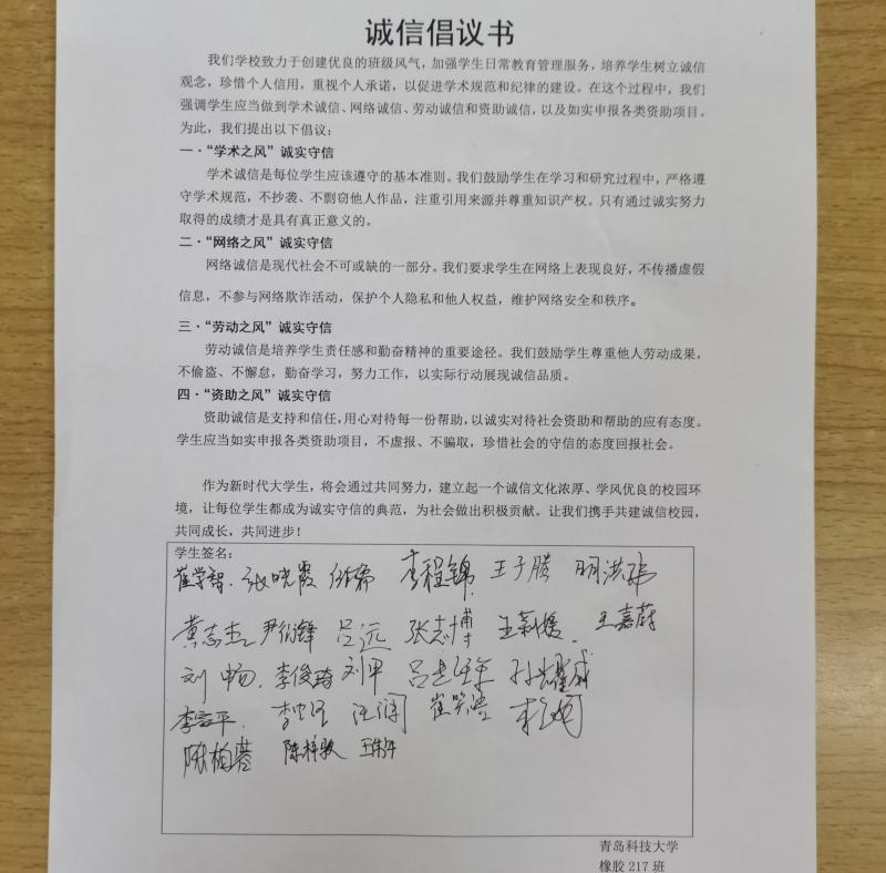 为深入贯彻党的二十大报告所提出的“弘扬诚信文化,健全诚信建设长效机制”的重要要求,增强同学们的诚信意识,培养同学们诚实守信品格,建立契约精神,形成人人讲诚信的良好氛围。高分子学院组织开展“以诚待人,以信立身”诚信主题教育系列活动。