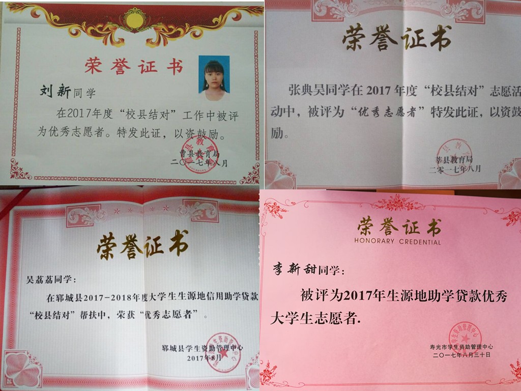 经过太阳成集团tyc9728学生资助中心的精心组织、学院的广泛宣传,2017年共有560多名学生申请参加。根据各县区资助中心的实际需求和学生的实际情况,学校最终遴选了76名学生参加志愿服务活动。服务范围覆盖了山东省全部17个地市,共计52个县(市)区资助中心。