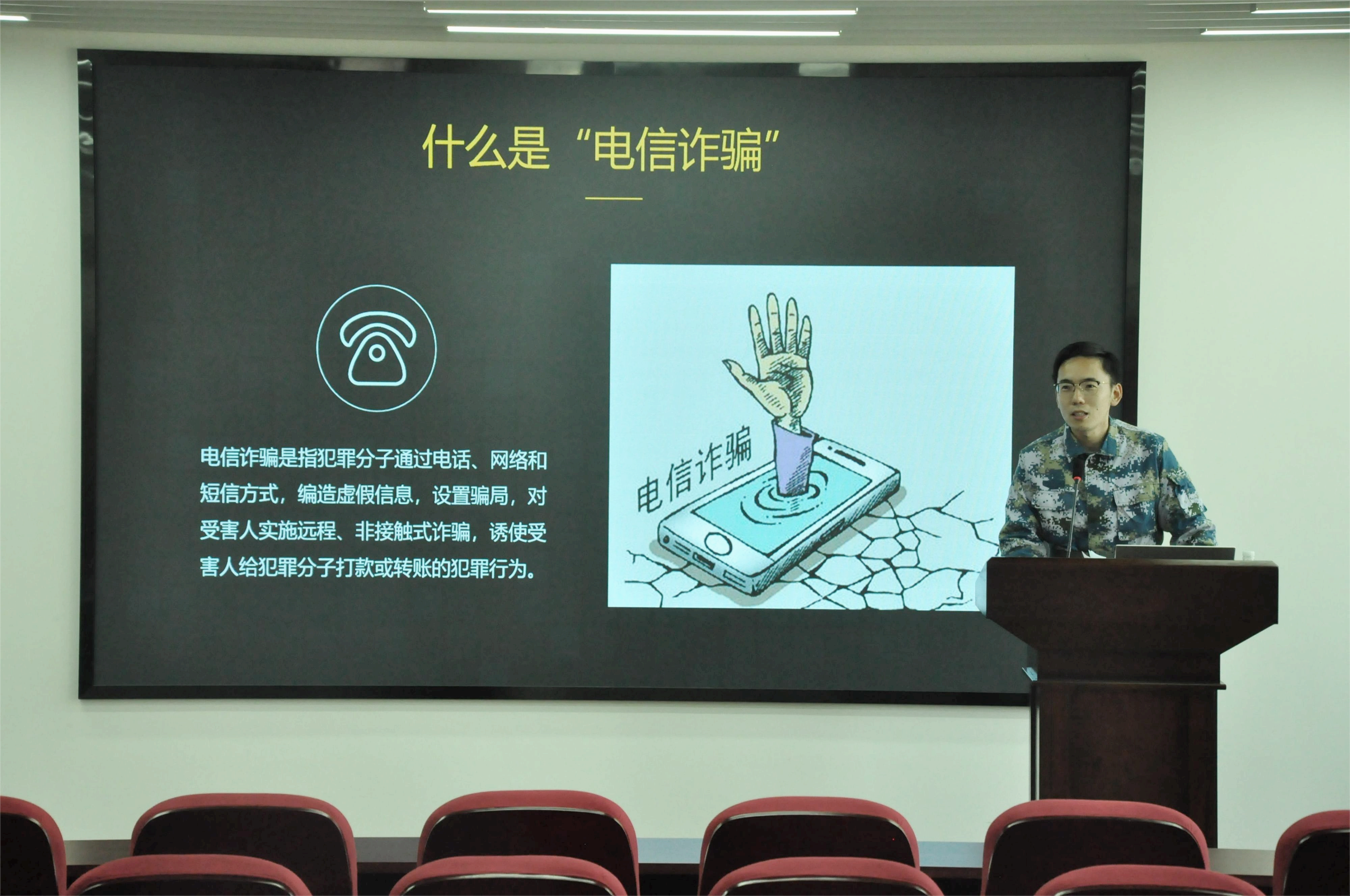 本次讲座由乔毅主讲。首先,乔毅讲解了学校的各项资助政策,其内容涵盖各类奖助学金、助学贷款、临时困难补助、学费减免等,并就它们的申请标准、申请时间、申请流程做了详细说明。其次,乔毅从电信诈骗的途径和目的两个方面讲解了电信诈骗的含义,简单概括了电信诈骗的四种手段,提醒同学们留心生活中此类事件,并详细介绍了预防电信诈骗的八个方法,通过顺口溜帮助学生记忆这些方法。