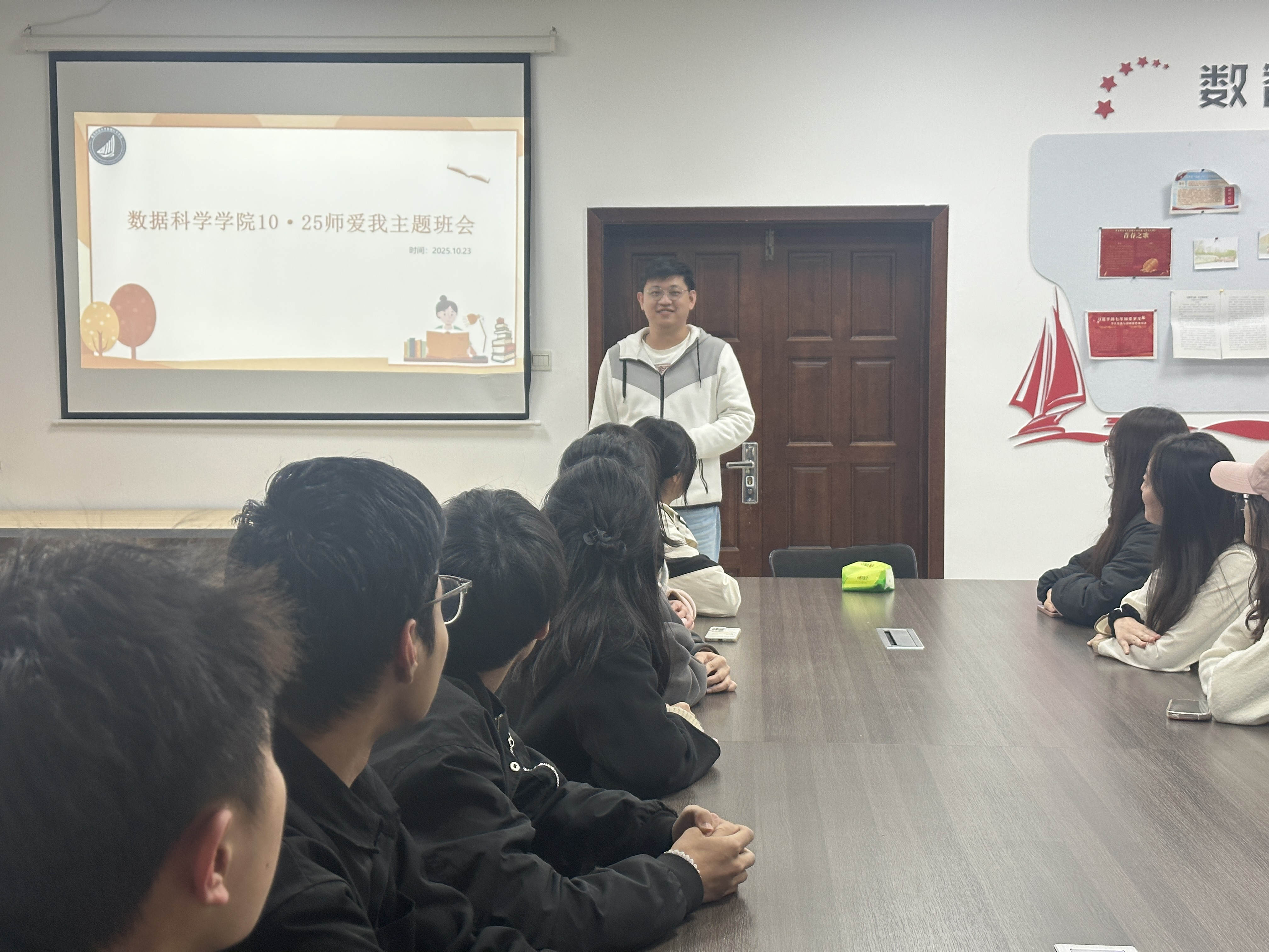 为深化师生情感联结弘扬校园感恩文化丰富思想政治教育实践形式2025年10月23日数据科学学院10·25师爱我主题班会在学院4002会议室顺利举行。本次班会由数据科学学院团委副书记兼学工办副主任姜国华主持学院各年级学生代表共同参与通过主题讲解、互动交流等多元形式让感恩教育更具感染力与实效性。
