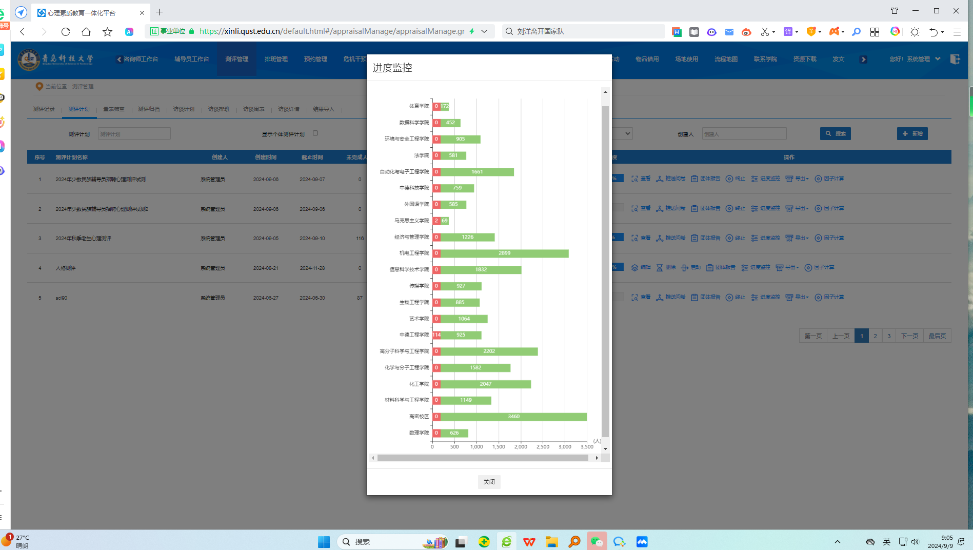 关于2024年秋季学期学生心理素质测评完成情况的公示