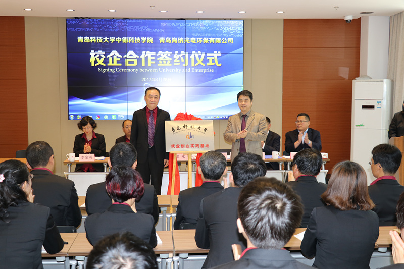李镇江和丁令义代表双方签订了校企合作协议,李镇江和梁永为就业创业实践基地揭牌,刘中冬和李宝英为教学实习基地揭牌。