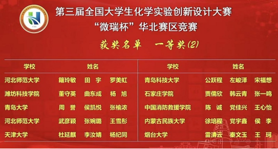 8月21日-24日,“微瑞杯”第三届全国大学生化学实验创新设计竞赛总决赛在厦门大学举行。受疫情影响,总决赛采取专家线下评审,各参赛高校线上答辩的方式进行。经过激烈角逐,我校参赛项目荣获总决赛一等奖。